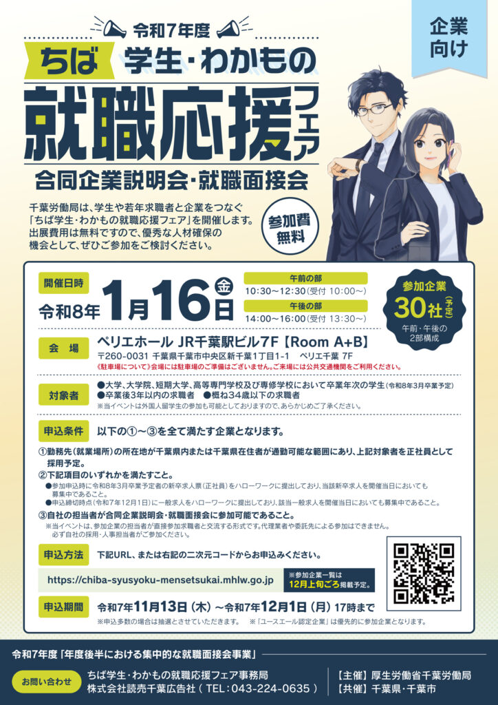・参加確定企業一覧は12月上旬ごろに千葉労働局ホームページにて公開いたします。